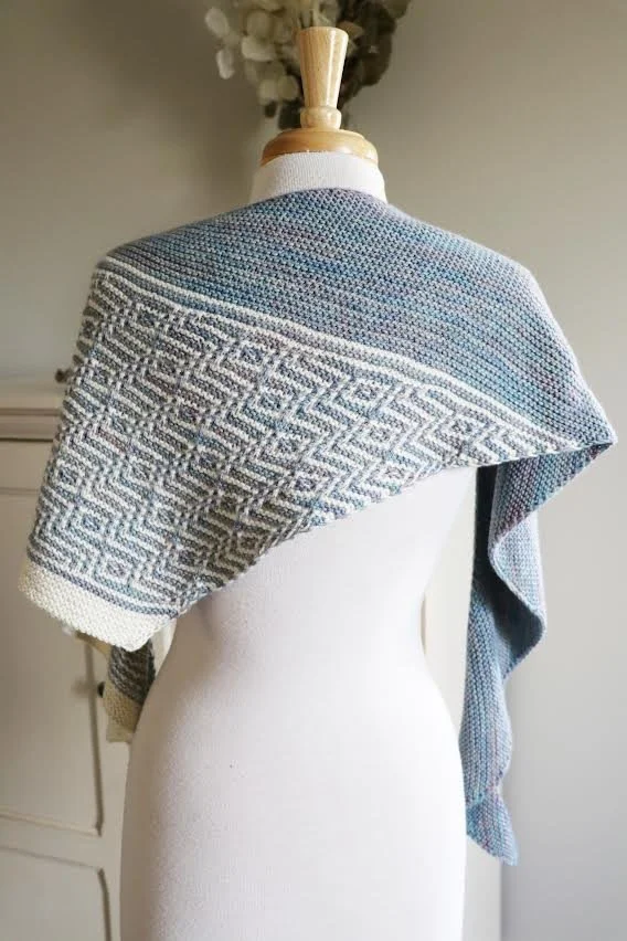 This knit reminded me how fun it is to choose yarn, play with color, and watch something grow off the needles row by row. If you’ve been thinking about joining a KAL or trying mosaic knitting, the Barnstable Shawl is a wonderful way in.