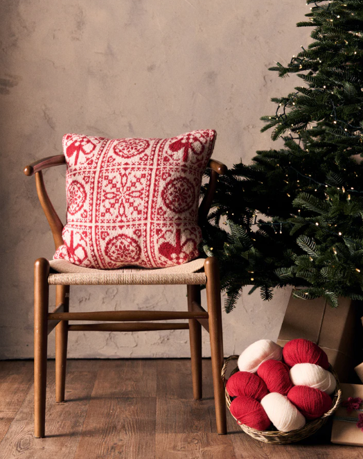 The Juleteppe project is a festive colorwork cushion (or blanket, if you prefer to go larger!) that celebrates the warmth and tradition of holiday knitting. The design features classic motifs, brought to life in striking color combinations.