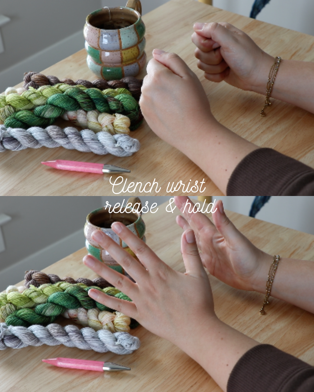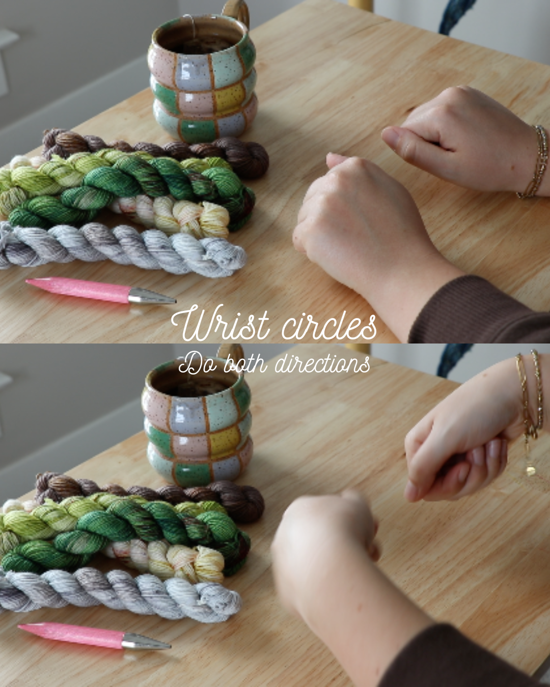 I am not a doctor. This is simply the hand stretch routine I use to support my own knitting practice. If you are experiencing pain or injury, please consult a licensed healthcare provider.
